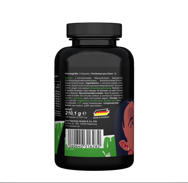 Mit den Inhaltsstoffen wie L-Citrullin, Maca-Extrakt, Bockshornklee-Extrakt und Ingwerwurzel-Extrakt geben wir dir ein Tool zur Hand, welches dir maximale Standfestigkeit bietet. Werde zum dem Liebhaber, von dem deine Partnerin noch Tage danach träumen wird!