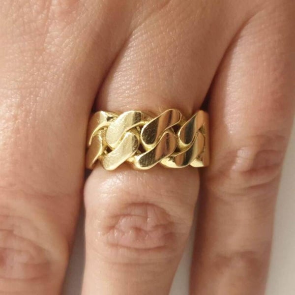 Bei dieser Sonderanfertigung wurden 750er Gold zu einem massiven, starren Kettenring verarbeitet.