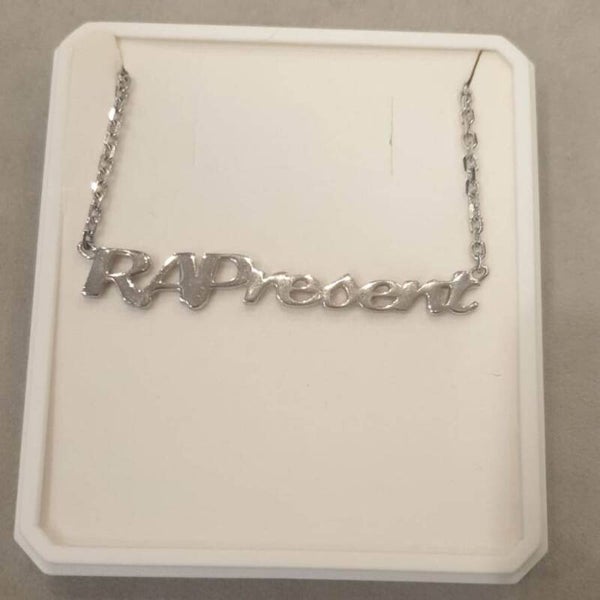 Die Schrift ist im Hochglanz-Stil und mit der Kette fix verlötet.